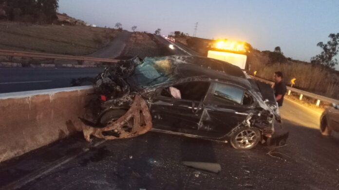 Um automóvel ficou praticamente destruído em um acidente na BR-354, entre Lagoa Formosa e Patos de Minas, na tarde desta segunda-feira (25/8). Um Honda/City capotou após o motorista perder o controle direcional. Os ocupantes do veículo não sofreram ferimentos graves.