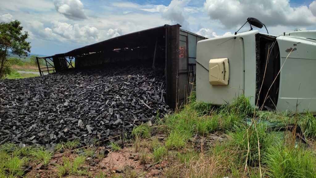 O motorista não se feriu, teve apenas danos materiais nos veículos. O semirreboque estava carregado com carvão a granel de floresta plantada.