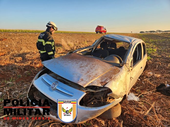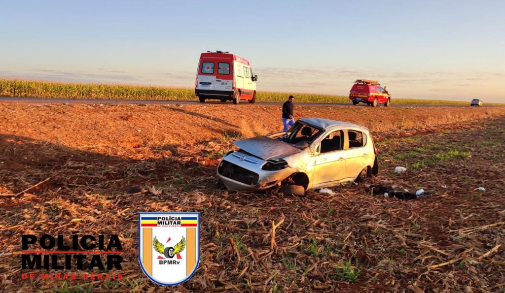 Na madrugada de sábado (1/7), por volta das 06h na MG-410, KM 55 no município de Presidente Olegário, os bombeiros atenderam uma ocorrência de saída de pista seguida de capotamento de um veículo Fiat/Pálio.