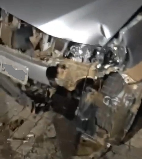 Em seguida o jovem, de 23 anos, correu para a rua e deitou no asfalto. Um motorista, de 47 anos, que passava pelo local, parou para prestar ajuda, momento em que o indivíduo se levantou rapidamente, entrou na caminhonete Toyota/Hilux, tentou sair do local, porém bateu em duas placas, danificando o capô do veículo, para-choque, para-lamas, faróis e toda a parte dianteira e traseira.