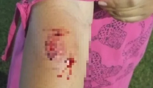 A jovem, de 25 anos, contou que caminhava pela avenida empurrando o carrinho de passeio com o filho de um ano de idade, quando um cão da raça pitbull, que estava na coleira, mas sem focinheira, se aproximou. Ela se assustou, e o cão acabou mordendo-a duas vezes.