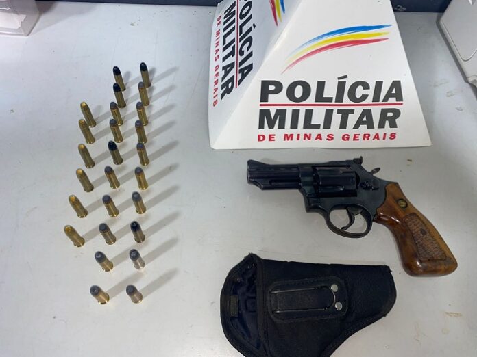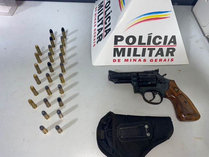 Ao verificar o interior do veículo, os militares localizaram um pote plástico escondido debaixo do banco do passageiro. Ao retirar a embalagem, o policial localizou um revólver calibre 38 carregado com seis munições intactas. Dentro da embalagem havia outro pote plástico, este com mais 20 munições de mesmo calibre.