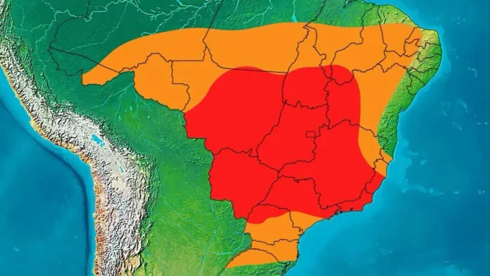 Uma nova onda de calor atinge o Brasil a partir de quinta-feira (14) e pelo menos oito estados devem registrar temperaturas acima dos 40° C. Segundo o Climatempo, Mato Grosso do Sul, Goiás, Distrito Federal, sul do Mato Grosso, norte de São Paulo, parte de Minas Gerais, sul do Tocantins e oeste da Bahia devem ficar mais de 5° C acima do padrão para a época. O fenômeno se estende até o dia 20 de dezembro de 2023.