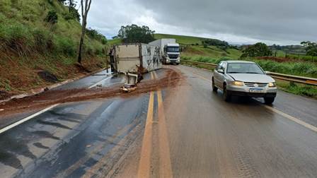 Um caminhão tombou na BR-365, na altura do KM-389, próximo à conhecida “curva da morte” em Patos de Minas, na manhã desta segunda-feira (9/2). O acidente aconteceu em um trecho de descida, pouco antes da curva, nas proximidades de um radar, e mobilizou equipes da Polícia Rodoviária Federal (PRF).