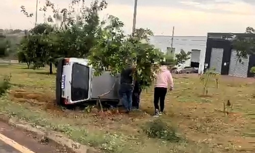 Na manhã desta sexta-feira (15), um veículo tombou na Av. Fátima Porto, que dá acesso ao bairro Novo Horizonte.