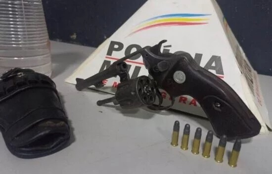O veículo foi abordado e dois homens foram presos, sendo o suspeito das ameaças e o primo dele, de 21 anos. Dentro do carro, os policiais encontraram um litro de álcool e um revólver calibre 22, carregado com seis munições.