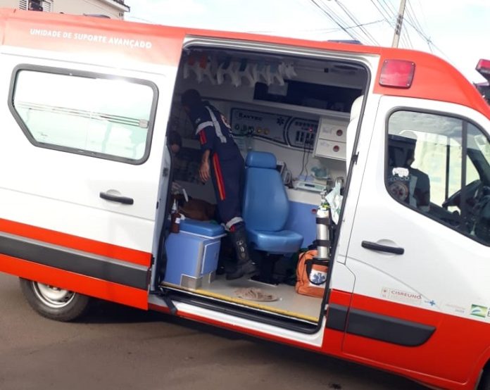Na tarde deste domingo (09/04) um homem de 45 anos foi socorrido pela equipe do SAMU para a Santa Casa de Misericórdia em Patos de Minas, apresentando graves ferimentos na mão e na nuca.