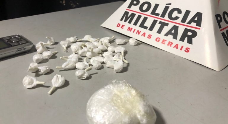 Durante as averiguações, na cozinha do bar, a Polícia Militar encontrou uma vasilha de plástico ao lado da geladeira em meio a alguns temperos. Dentro dela, os militares encontraram uma balança de precisão, uma porção e 42 dolinhas de cocaína.