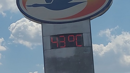 A forte onda de calor que vem atingindo Patos de Minas, Lagoa Formosa, Carmo do Paranaíba, Presidente Olegário e várias cidades da região e boa parte do país, levou a capital do milho a registrar, nesta segunda-feira (13/11), a temperatura 43ºC em um termômetro instalado em um posto de combustível próximo ao Trevo da Pipoca em Patos de Minas.