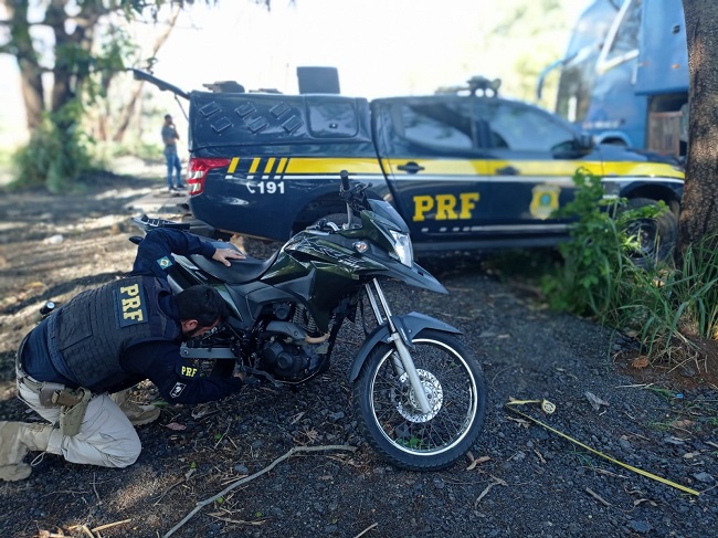 Na manhã tarde desta quarta-feira (13/09), a Polícia Rodoviária Federal por meio do Grupo de Patrulhamento Tático, recuperou uma moto furtada no município da cidade de São Paulo (SP).