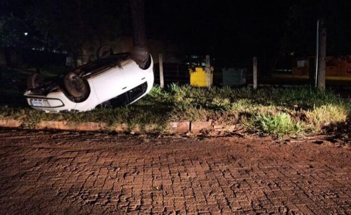 Patos de Minas: motorista perde controle direcional e capota carro próximo à Escola Agrícola