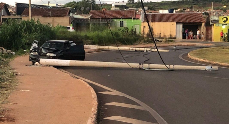 O homem contou que ao tentar acudir o garotinho que estava na cadeirinha perdeu o controle direcional do veículo, subiu no passeio e atingiu o poste. Com o impacto, o poste caiu no chão e a fiação ainda derrubou o outro.
