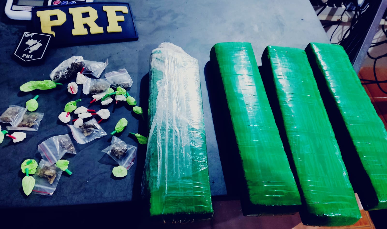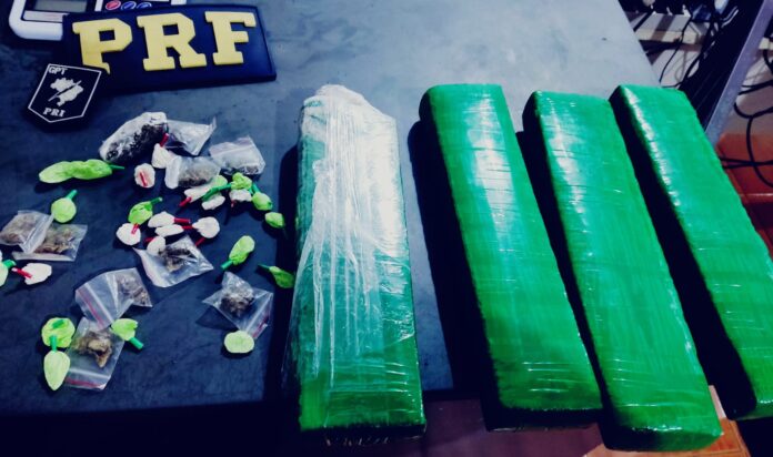 Diante da suspeita, ao realizar busca na bagagem, foram encontrados quatro barras de maconha. Com ele, ainda foram encontrados diversos invólucros de flor de maconha e 27 papelotes de cocaína.