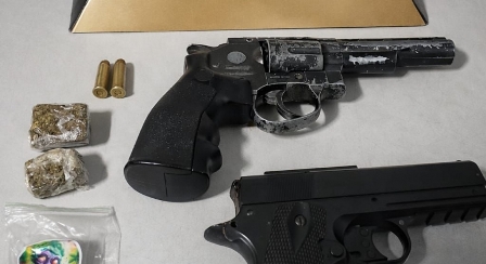 Em continuidade às diligências, e após autorização do morador, de 25 anos, que relatou que o imóvel havia sido cedido por sua genitora para a realização do evento, foram realizadas buscas no interior da residência. Durante a ação, os militares localizaram um revólver calibre .38, com numeração raspada, municiado com duas munições, escondido em um armário em um cômodo utilizado como cozinha. Também foram encontrados dois tabletes e duas buchas de substância semelhante à maconha na área onde ocorria a festa.