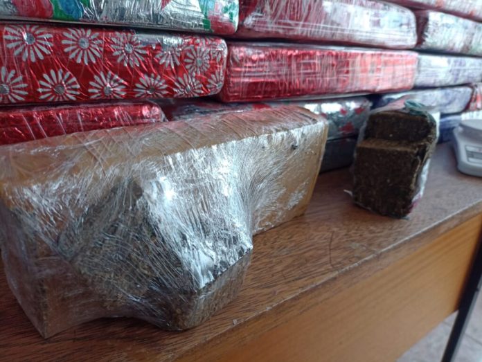 Lá, localizaram uma grande quantidade de drogas, sendo 40 quilos de maconha e 4 quilos de base. O suspeito não se encontrava na casa.