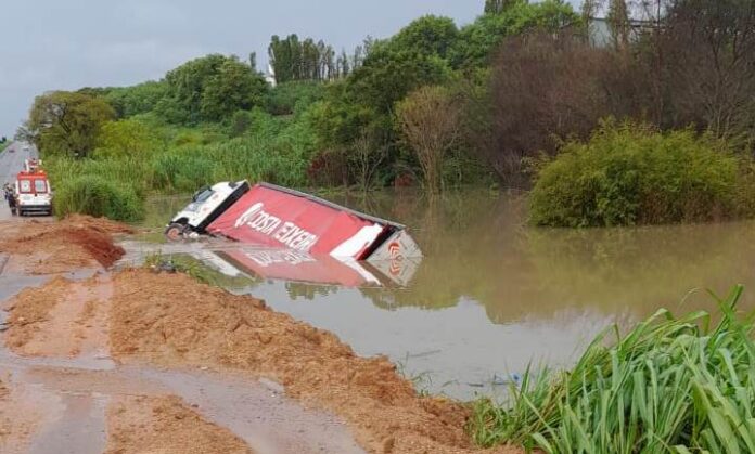 Segundo relatos, o fato aconteceu em meio a uma chuva intensa, quando o motorista da carreta, para evitar uma colisão na traseira de um veículo de passeio, realizou uma frenagem brusca, perdendo o controle do veículo que acabou caindo dentro de uma represa às margens da rodovia.