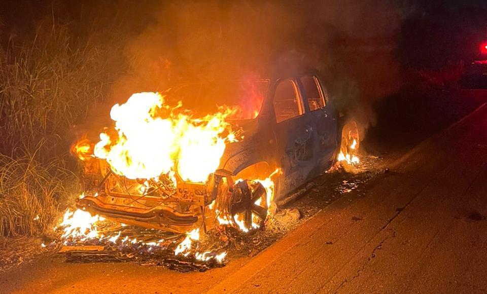 Durante o atendimento da ocorrência do suposto assalto, os policiais foram informados que havia uma caminhonete em chamas na BR-365, próximo a Cooxupé. Ao ser verificado, foi constatado que o veículo se tratava da caminhonete supostamente roubada.