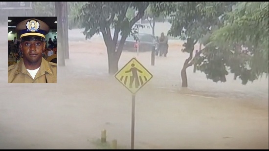 Outro registro, feito por imagens de uma câmera de segurança, que mostra um policial militar enfrentando a enxurrada no cruzamento das avenidas Walter Pereira Nunes e Altino Guimarães para resgatar as ocupantes de um carro que estava ilhado pelas águas.