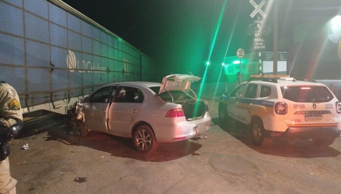 Na noite desde sábado (22), por volta das 21h32, a Polícia Militar foi acionada para atender a um acidente de trânsito envolvendo um carro e uma locomotiva na Avenida Faria Pereira, em Patrocínio.