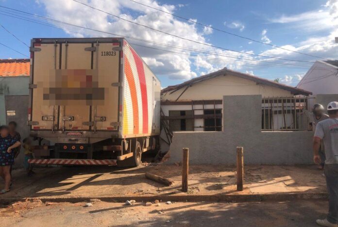 Um caminhão baú perdeu os freios e invadiu uma residência na Rua Alzino Martelo, no bairro Nova Floresta, em Patos de Minas. O acidente aconteceu na tarde desta quinta-feira (08/12).