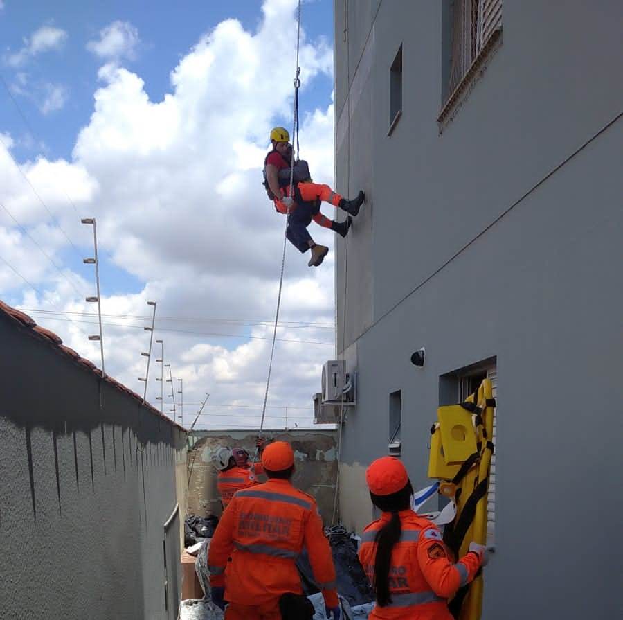 Após análises, as equipes do Corpo de Bombeiros montaram uma nova rota, em que um militar desceu até a vítima e, com uso de técnicas de salvamento em altura, realizou o resgate do homem com segurança.