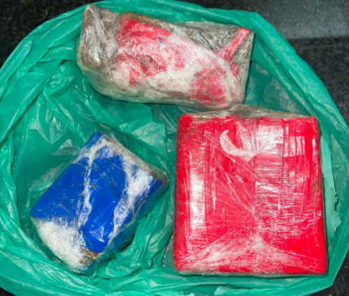 O cão farejador Kratus foi acionado para auxiliar na busca, e dentro de uma bolsa tipo maternidade, escondida entre objetos infantis, foram encontrados quatro tabletes de substância semelhante à maconha, uma pedra bruta aparentando ser crack, com potencial para render aproximadamente 60 porções, e uma pequena porção da mesma substância, que renderia cerca de 10 porções para o comércio. Também foi apreendida mais uma balança de precisão.