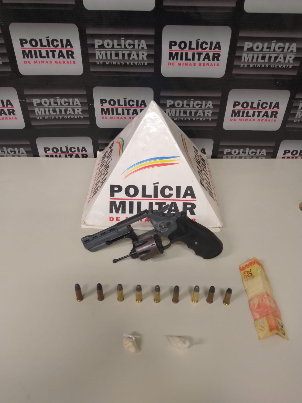 Foram apreendidos: 1 revolver calibre . 38 marca “Ranger” Modelo 102., 9 Munições calibre .38 intactas, R$ 20,00 reais em dinheiro. e 2 dólas de Cocaína. Um veículo Fiat Uno cor branca foi removido.