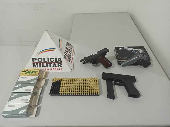 Com isso, os militares deslocaram até a casa do jovem e fizeram contato com os pais do aluno que, prontamente, autorizaram a entrada no imóvel. Durante a revista, no quarto do adolescente, foram encontrados uma Pistola Taurus calibre 7.65mm com um carregador vazio, cinco caixas de munição 9mm com 212 munições e um simulacro de arma de fogo.