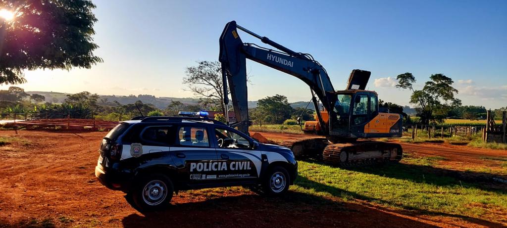 A Polícia Civil de Minas Gerais (PCMG), através da delegacia de Furtos, Roubos, Tóxicos e Entorpecentes de Patos de Minas, apreendeu uma escavadeira de esteira Hyundai/R-255 LVS que havia sido furtada em Aracruz/ES, avaliada em R$ 700 mil.