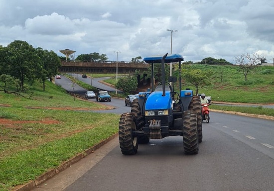 Após a prisão do suspeito, o trator foi abandonado por outro envolvido na Avenida Segismundo Pereira, em Uberlândia.