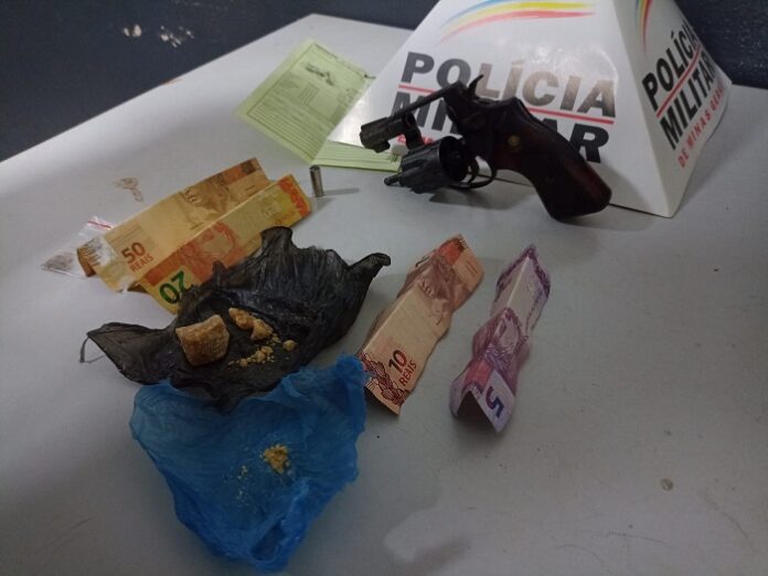 Devido ao forte odor de droga, a equipe de Ronda Ostensiva Com Cães (ROCCA) foi acionada. Os cães localizaram pedras de crack e uma pequena porção de maconha. Os policiais também encontraram um revólver e uma munição calibre .32 deflagrada.