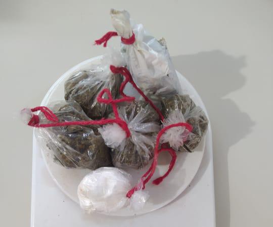 Já por volta de 08h40, foi realizada uma revista estrutural nas celas de visitas íntimas de um dos pavilhões, onde foram encontradas escondidas em uma fresta, na porta da cela, cinco porções de maconha, uma porção cocaína e doze comprimidos de ecstasy.