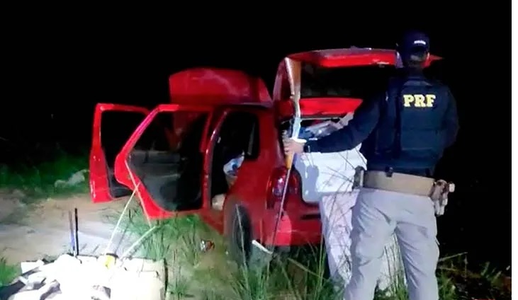Os policiais encontraram no carro, uma espingarda calibre 36, seis munições calibre 38, munições calibre 32, cartuchos calibre 36 e dois pacotes de chumbinho sem marca, além de um pote de pólvora. Os materiais foram encaminhados para a delegacia de plantão e o Gol removido ao pátio da PRF.