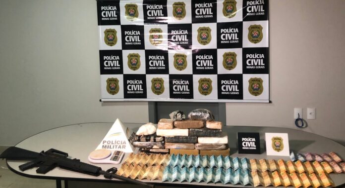 Nesta manhã, foram realizadas diligências na região da Colônia agrícola em Patos de Minas, onde havia denúncias de tráfico de drogas. As equipes policiais, com a ajuda de cães farejadores da ROCCA, localizaram em diversos pontos da parte externa da residência a quantia de 15 quilos de cocaína e crack, e dentro do imóvel, dinheiro e um simulacro.