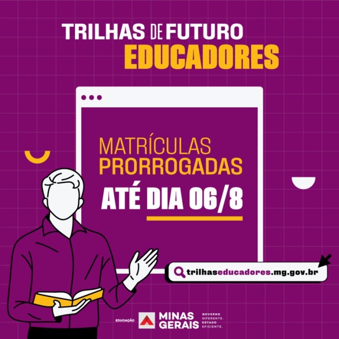 A Secretaria de Estado de Educação de Minas Gerais (SEE/MG) prorrogou o prazo para que os servidores contemplados nas vagas do programa Trilhas de Futuro Educadores concluam o processo de matrícula na instituição indicada até o dia 6/8. A decisão de estender a data limite para que os inscritos concluam a matrícula dos cursos de aperfeiçoamento considera as solicitações da comunidade escolar, que retoma as aulas na próxima terça-feira (1/8), após o recesso escolar.