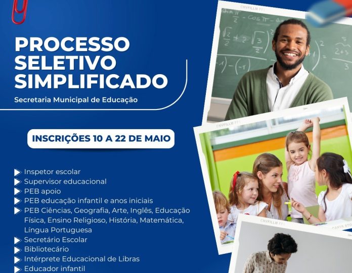 As vagas são em caráter temporário para atuação em diversas áreas da Secretaria Municipal de Educação.