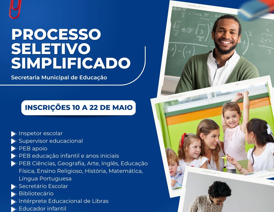 A Prefeitura de de Patos de Minas realizará processo seletivo simplificado para preenchimento de vagas em caráter temporário para atuação na Secretaria Municipal de Educação.