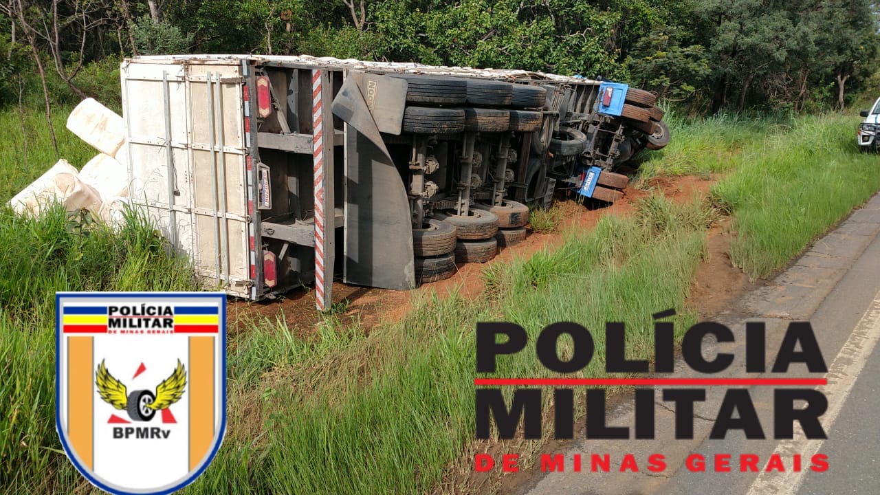 Uma carreta carregada com algodão tombou na tarde desta sexta-feira (19/1), na rodovia MGC-354, na descida da “represona”, no município de Presidente Olegário. O fato foi registrado por volta das 14h45.