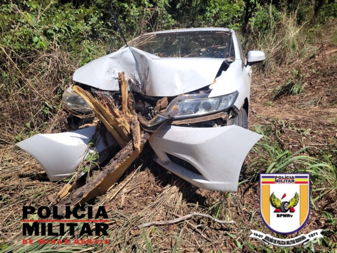Presidente Olegário – Motorista cochila ao volante e bate carro contra árvore na MG-410