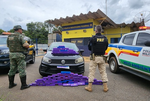 Ao ser questionado, ele informou que estava transportando ilícito no porta-malas. Ao fazer a busca no veículo, foram encontrados 73,5 tabletes de substância análoga à maconha, pesando 45,04 kg (em balança não oficial).