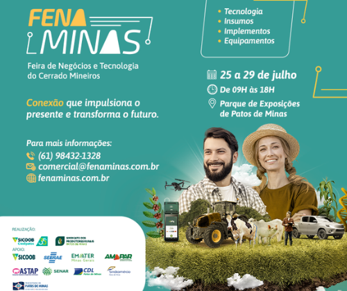 A 1ª Feira de Negócios e Tecnologia do Cerrado Mineiro – Fenaminas começa amanhã (24/07). A programação desse ano conta com palestras, minicursos, exposições de máquinas, equipamentos além de ser uma grande oportunidade de fazer negócios.