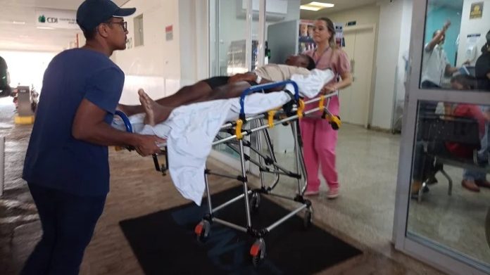 André Vinicius Silva Borges, de 20 anos, foi atingido na região lombar e está com o projétil alojado próximo a coluna. A situação é avaliada pelos médicos do hospital para uma possível cirurgia.