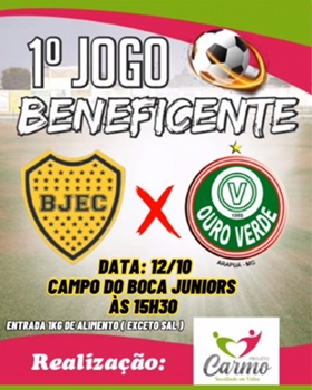 Em Carmo do Paranaíba o futebol voltou em ação com a Copa União de Futebol 2021 que vem apresentando bons jogos e boa presença de público, liberado pela prefeitura dentro dos cuidados necessários. E especialmente neste dia 12 de outubro, dia da padroeira do Brasil e das crianças, um dia de alegria e agradecimento, Carmo do Paranaíba dará mais uma grande demonstração de solidariedade com uma partida amistosa, preparatória para a volta da Copa Regional Amapar, entre as equipes do Boca Júnior e do Ouro Verde de Arapuá.