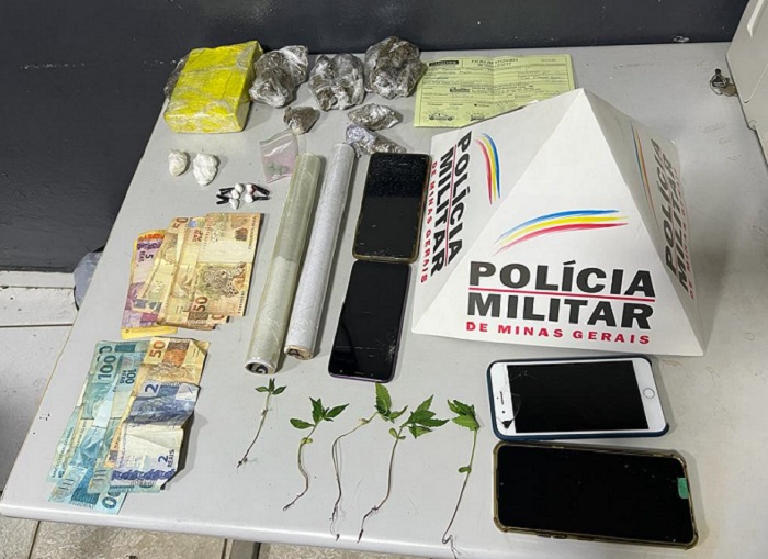 Os militares foram até a casa do suspeito, de 21 anos, onde visualizaram três pés de maconha, plantados dentro de um vaso. Ao entrar na casa, os policiais encontraram mais dois pés de maconha, cinco papelotes de cocaína, cinco comprimidos de ecstasy e uma quantia em dinheiro.
