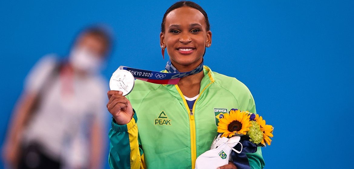 A paulista Rebeca Andrade, de 22 anos, entrou para a história da ginástica artística do Brasil ao conquistar a prata no individual nos Jogos de Tóquio (Japão), a primeira medalha olímpica feminina do país na modalidade, na manhã desta quinta-feira (29). Rebeca somou ao final dos quatro aparelhos 57.298 pontos, ficando atrás somente da norte-americana Sunisa Lee (57.433) e à frente de Angelina Melnikova, do Comitê Olímpico Russo (ROC, sigla em inglês) que totalizou 57.199. A brasileira ainda tem chances reais de conquistar mais medalhas nas disputas de salto e solo a partir de domingo (1º de agosto).
