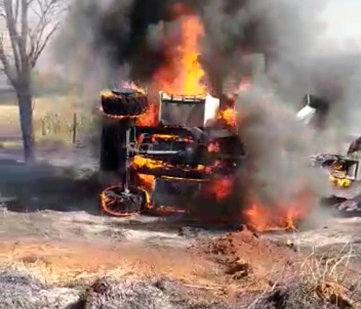 Retroescavadeira da prefeitura de Lagoa Formosa incendeia na zona rural do município