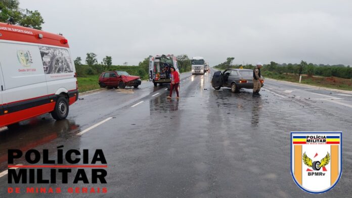 De acordo com informações, uma guarnição da Polícia Militar Rodoviária (PMRv), realizava patrulhamento pela rodovia quando deparou com o acidente entre um VW/Gol e um Fiat/Uno.