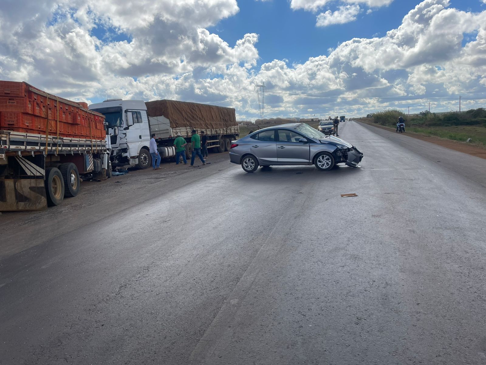 Segundo informações repassadas aos militares, o condutor de 64 anos do HB20 relatou que havia parado no acostamento da via e, ao tentar atravessá-la para entrar à esquerda, não percebeu a aproximação do caminhão que vinha logo atrás. O condutor do caminhão, de 36 anos, afirmou que seguia no sentido São Gotardo/Rio Paranaíba, quando o HB20 entrou repentinamente à sua frente, resultando na colisão. Após o impacto, o caminhão ainda atingiu o veículo de carga estacionado do outro lado da rodovia.