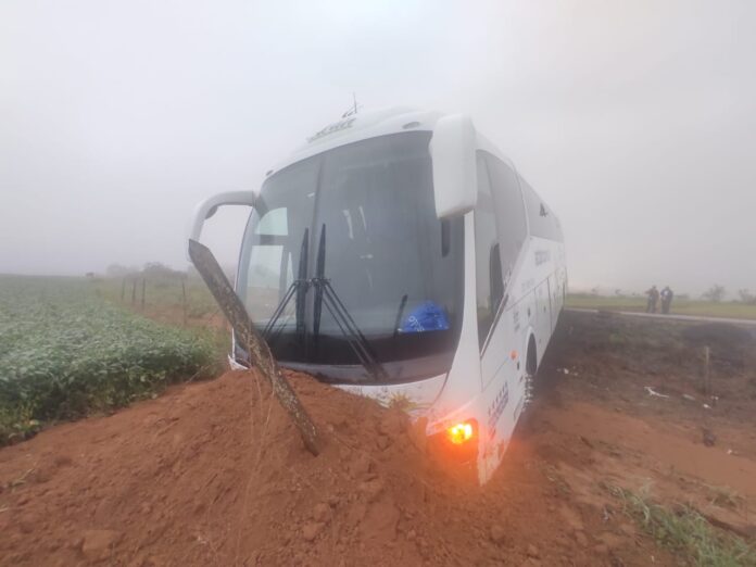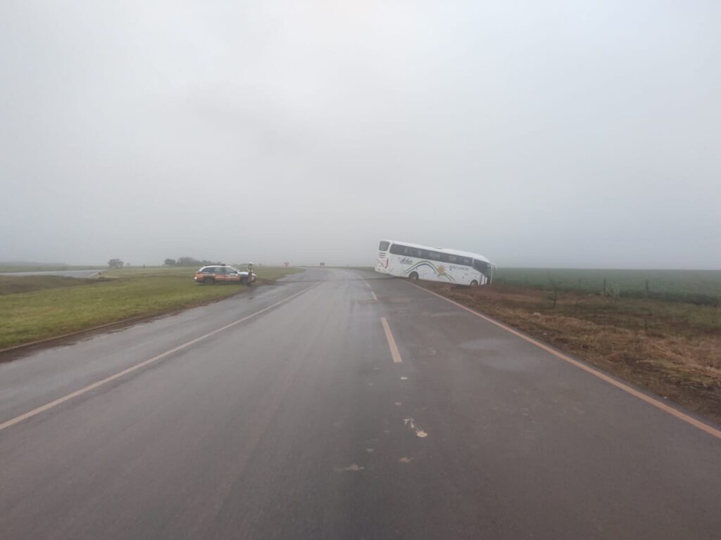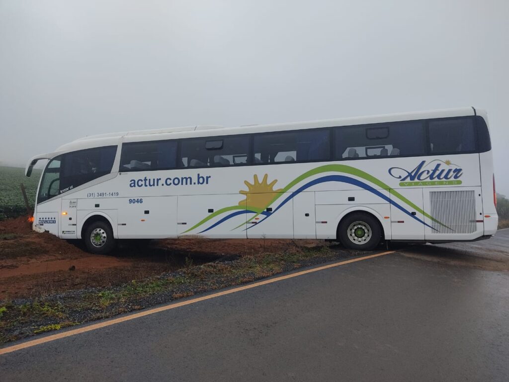 Na madrugada de hoje (30), um ônibus de transporte coletivo de passageiros se envolveu em um acidente no km 334 da BR 354 (trevo de acesso à cidade de Ibia/MG e entroncamento da BR 354 com a MG 235).