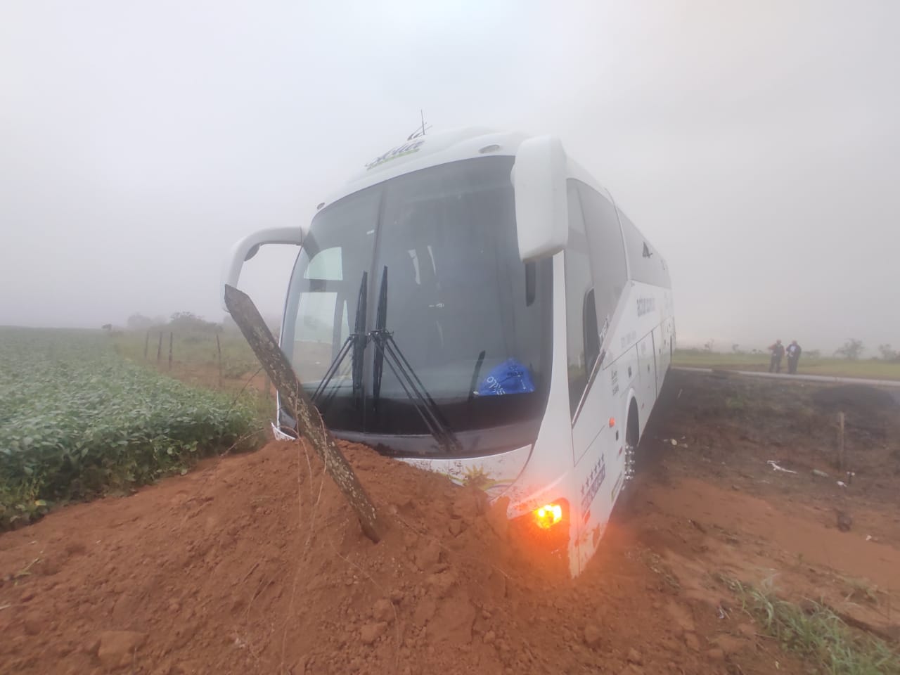 O ônibus (SCANIA/IRIZAR PB R, cor branca) estava caiu em um pequeno barranco, com a frente voltada para a faixa de domínio e sua traseira ocupava parcialmente a pista de rolamento do mesmo sentido, mas sem prejuízo ao fluxo de veículos.